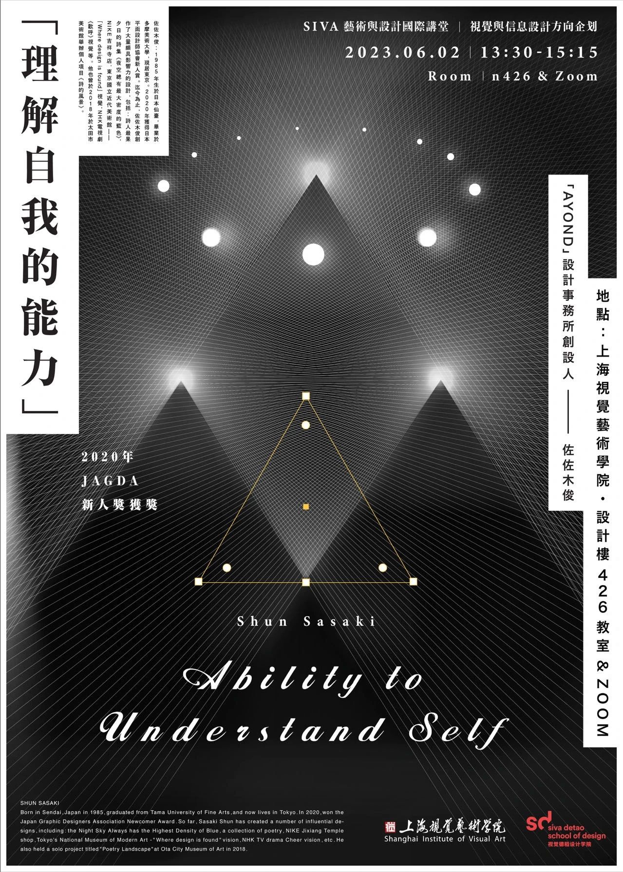 Sun Sijia is a graphic designer, art director, university lecturer, and design columnist. Born in 1989 in Shanghai, China, he holds a Bachelor’s degree in Art Design from Shanghai Theatre Academy and a Master’s degree in Basic Design from Musashino Art University in Japan. He studied under renowned designers such as Kenji Ekuan and Takahiro Iwadate, focusing on design theory and practical exercises.